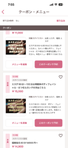 【クーポン】から下記のエステコースを